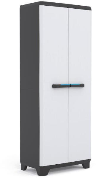 Modern megjelenés bármely térbe A Keter Linear Utility szekrény fekete-szürke színe és letisztult vonalai révén jól illeszkedik különböző környezetekbe – a fürdőszobától a garázsig. A belső tér elrendezése testreszabható. Három állítható polc található a jobb oldalon, míg a bal oldal szabadon marad nagyobb vagy hosszabb tárgyak számára. Masszív szerkezet és kényelmes használat A szekrény mindössze 13,14 kg súlyú, és tartós műanyag felépítésének köszönhetően strapabíró még nehezebb környezetben is. Az ergonomikus soft touch fogantyúk kényelmes kezelést biztosítanak, a lakattal zárható funkció pedig fokozott biztonságot nyújt. Műszaki adatok